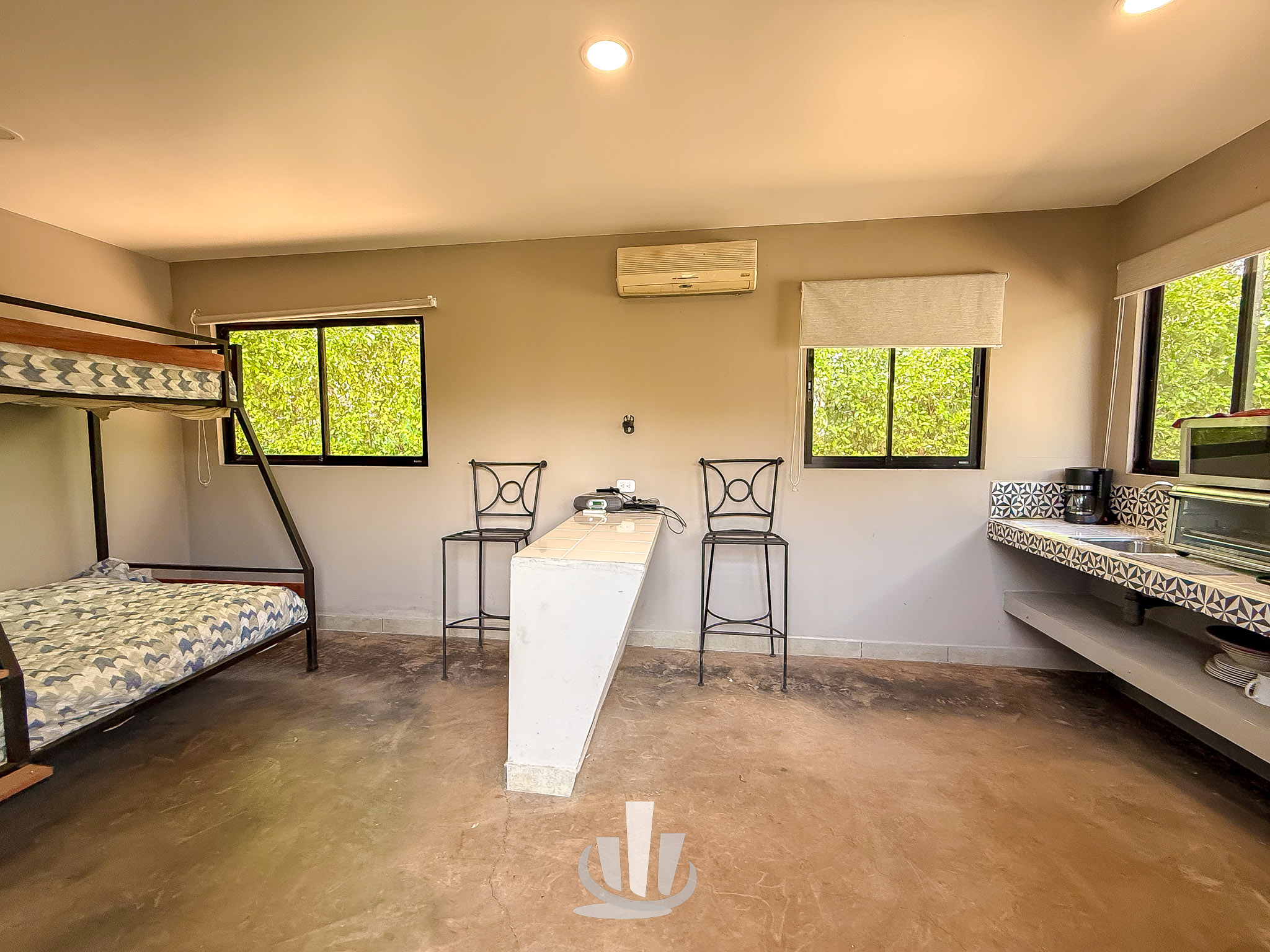 • Rancho principal de 70 m² (≈ 753 ft²) con baño, ducha, cocina y dos barras